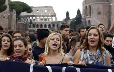 In Italië hebben zowat 100.000 leraars, scholieren en studenten betoogd tegen de besparingen van de regering-Monti in het onderwijs.