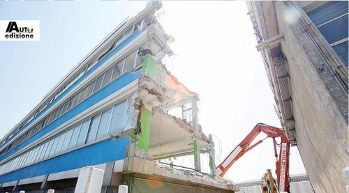 De nieuwe Maserati-fabriek in Turijn, waar de komende jaren respectievelijk de nieuwe Quattroporte, Ghibli (en uiteindelijk ook een Alfa Romeo topmodel) geproduceerd zullen worden, zal een heel eigen gezicht krijgen met een imponerende entree. Inmiddels wordt het oude herkenbare pand met de blauwe lijnen van Bertone afgebroken (foto). Toen Fiat de voormalige Bertone-fabriek in stadsdeel Grugliasco overnam, werd de onderneming tijdelijk FGA-Officine Automobili Grugliasco genoemd en inmiddels is het officieel Officine Maserati Grugliasco. Op dit moment zijn daar reeds 350 werknemers bezig met de voorbereidingen op de productie van de nieuwe Quattroporte, die begin 2013 zal worden gepresenteerd.