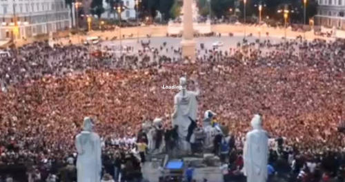 Op het Piazza del Popolo in Rome dansten zondag 15.000 mensen Gangnam Style. Het evenement was georganiseerd met behulp van social media.