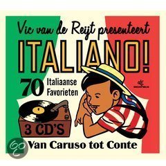 Van Enrico Caruso tot Paolo Conte: Vic van de Reijt heeft ze allemaal bijeen gebracht op drie CD’s: 70 Italiaanse favorieten. Van de Reijt is schrijver, uitgever en liefhebber van de gevoelige snaar. Eerder maakte hij al bloemlezingen over Franse chansons, Duitse schlagers, Vlaamse en Surinaamse volkszang. Nu is er dus Italiano!