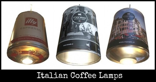 Wat is er mooier dan een dampend kopje espresso te drinken onder het licht van je Italian Coffee Lamp? De lampen zijn vervaardigd van echte (gebruikte) koffieblikken. Kies je eigen favoriete koffiemerk als lamp.