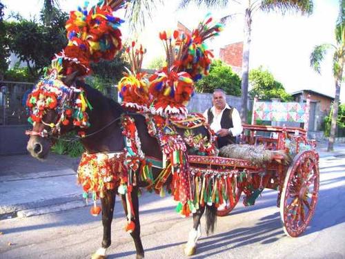 The Sicilian cart (or carretto Siciliano in Italian and carrettu Sicilianu in Sicilian or carretti (plural)) is an ornate, colorful style of horse or donkey-drawn cart native to the island of Sicily, in Italy.