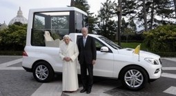 De Paus rijdt al meer dan 80 jaar Duits. Begin december kwam de grote baas van Mercedes de allernieuwste Pausmobiel persoonlijk afleveren.