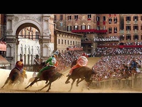 Because life takes place in the contrade, the quarters, or neighbourhoods, which divide the city. Each one has its church, its fountain, in which every baby receives his contrada’s baptism. Each one also has an office which, in the end, is not much different from any club: where people play cards, organize trips and excursions and meet to watch football games on giant screens. But with a passion and an extraordinary mission: the one for the Palio. It would take a book to tell everything there is to tell about the Palio. To try and summarize is to run the risk of leaving out important details and not stressing adequately the attraction of a race that is absolutely unique. But we’ll try anyway.