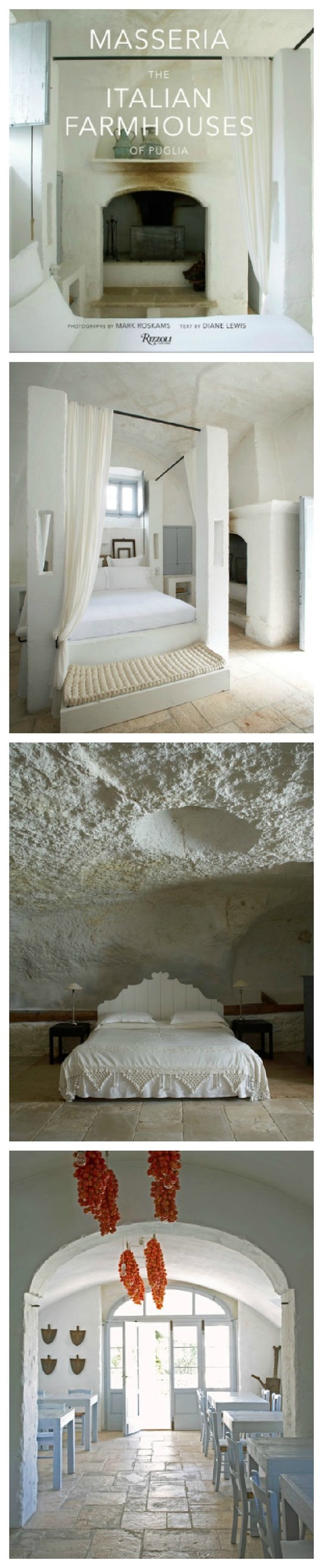 The houses of Puglia, called “masseria,” are fortified structures of brick, stone, and concrete dating from the Middle Ages and surrounded by verdant vineyards and groves of olive trees; many have been renovated to serve as private residences or boutique hotels (see Paradise in Puglia: Pensione to the Stars). You can admire the local architecture in Masseria: The Italian Farmhouses of Puglia (Rizzoli).
