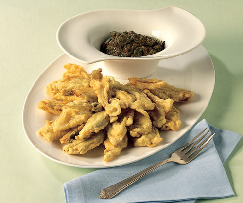 Venkel is een groente waarmee je alle kanten op kunt. Hier hebben we hem gefrituurd zodat hij een krokant jasje krijgt. De mediterrane pesto is een goede begeleider.