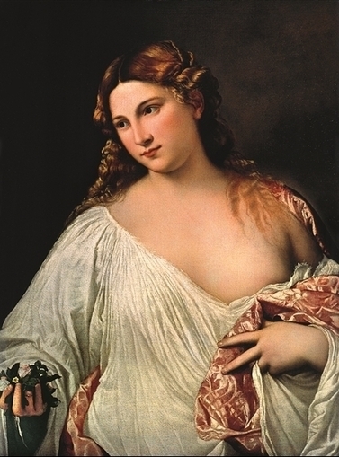 Flora uit de Galleria degli Uffizi in Florence, Danae uit het Museo di Capodimonte in Napels, La Bella en La Maddalena uit de Galleria Palatina (Palazzo Pitti) in Florence, en tot slot een schitterende Maria uit de Pinacoteca van Ancona. Al deze vrouwen, geschilderd door Titiaan, hebben tijdelijk onderdak gevonden in de Scuderie del Quirinale in Rome.