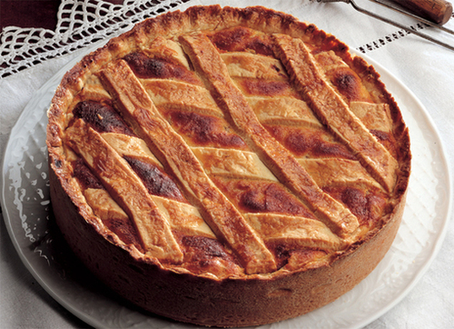 Napolitaanse paastaart, pastiera napoletana, met ricotta, gekookte tarwekorrels, citrus en sukade.