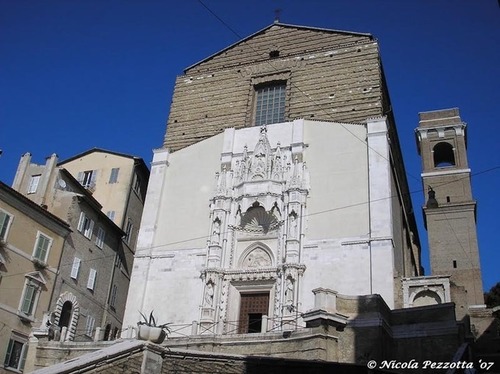Dal Duomo, vicino alla casa dietro alla torre campanaria, scendiamo le scalette verso Piazza del Senato. Durante la discesa salta subito all’occhio la cupola in rame della Chiesa dei SS. Pellegrino e Filippo Neri del XVIII, nata nei pressi dell’area dove sorgeva l’antica Chiesa di San Salvatore. Sulla piazza notiamo subito un palazzo con un arcata alta e stretta nella parte destra e delle eleganti bifore adorne di cornici scolpite; è il Palazzo del Senato (XIII sec.), la più antica sede del Comune. Scendendo, ora, via Ferretti fino a Piazza Stracca incontriamo sulla destra il Museo Archeologico Nazionale delle Marche, che raccoglie, tra gli altri, la collezione di resti della civiltà dei Piceni più grande al mondo. A piazza Stracca troviamo la Chiesa del Gesù (del 1665) e il Palazzo degli Anziani che, dal 1270, ha subito varie trasformazioni e utlizzi negli anni (Comune, Pinacoteca civica, Facoltà di Economia…). Prendete ora le scalette al lato del Palazzo, e scendete fino alla strada (lungomare Vanvitelli). Percorrete ora tutto la via dirigendovi verso Piazza della Repubblica dove troverete il nuovissimo Teatro delle Muse (distrutto durante l’ultima guerra). Nel percorrere questa via non dimenticate di visitare, sulla sinistra, Santa Maria della Piazza (XIII sec.) unica nel suo genere e, sulla destra, la Loggia dei Mercanti (XV sec.) con la facciata in stile gotico fiorito veneziano. Sull’altro lato della Piazza della Repubblica troviamo la Chiesa del SS. Sacramento (1538) con il suo particolare campanile con la cuspide a chiocciola ispirato alla famosa cupola del Borromini realizzata nella Chiesa di Sant’Ivo alla Sapienza a Roma. Nel risalire verso Piazza del Senato, anziché percorrere la strada già fatta, prendete via Pizzecolli così da incontrare alla vostra destra prima Piazza del Plebiscito (o del Papa) e poi la Chiesa di San Francesco alle Scale, con il portale gotico-veneziano del 1454.