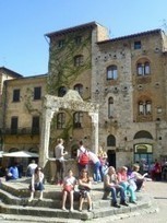Het was best moeilijk om gedag te zeggen tegen ons kasteel. ‘s Ochtends dronken we nog een cappuccino met de eigenaren en toen was het tijd om naar de volgende locatie te gaan: Agriturismo Borgo Cappelli. Weer iets nieuws! Maar voordat we hier naartoe gingen, bezochten we San Gimignano. Ons bezoek had bovendien een missie: we moesten op zoek naar het lekkerste ijsje. San Gimignano was niet moeilijk te vinden. De stad met dertien torens (ooit waren het er 70!) zie je al op kilometers afstand. We parkeerden net buiten de stadsmuren en gingen op pad.