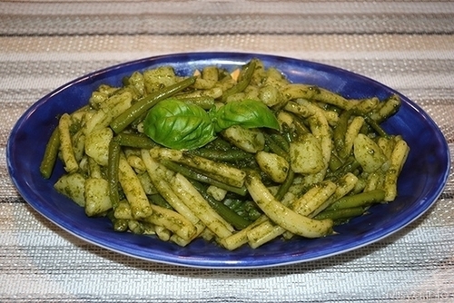 Questa è una variante della classica pasta al pesto, fiore all’occhiello della cucina ligure, l’aggiunta di patate e fagiolini che cuociono insieme alla pasta, danno al piatto un gusto davvero particolare.