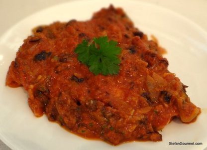 Even though I didn’t actually have this dish while I was in Sicily recently, I did see it on menus everywhere and I thought it would be appropriate to include it in the series of Sicilian recipes I’m doing.