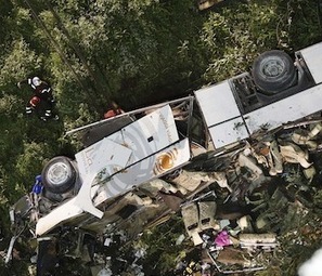 De bus was op weg naar Napels en vervoerde mensen die terugkwamen van een pelgrimstocht in Puglia. Ook zaten er kinderen in de bus.