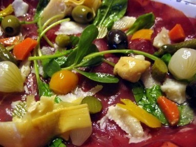 Ricetta fresca: Bresaola, rucola e scaglie di parmigiano.