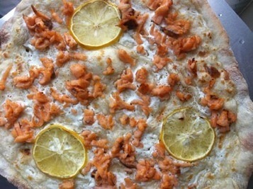 Zelf heb ik een beetje gemengde gevoelens bij pizza met zalm. De smaak doet mij altijd denken aan een flammkuchen uit de Elzas, in plaats van aan een typisch Italiaans gerecht. Het leuke is wel dat er aan deze pizza geen tomatensaus te pas komt.