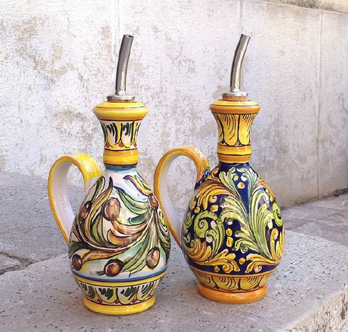 Cofanetto legno con Oliere Caltagirone fatte a mano e Olio Bio 500 ml