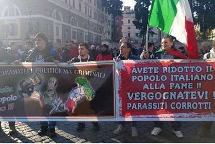 Het Piazza del Popolo in de Italiaanse hoofdstad Rome vormt woensdagmiddag het decor voor een vreedzaam protest van de zogenoemde Hooivork-beweging. Duizenden ‘forconi’ zijn uit alle delen van het land richting de hoofdstad getrokken.