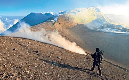 Etna is the largest, most dangerous volcano in Europe. Its credentials are impressive: 10,990ft, 300 cones, five live craters and constant eruptions. With each eruption the landscape is altered as new cones and calderas (collapsed, cauldron-shaped chambers) are formed and fresh lava flows distort the landscape. In 2003, five months of activity closed Catania airport and the local population carried umbrellas and wore masks.