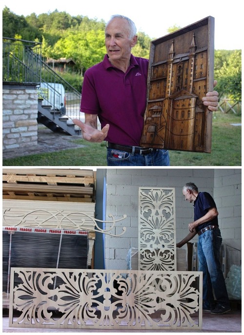 In Canavaccio di Urbino, a suburb of the university town, a factory welcomes visitors with a sign that reads “Artista del Legno”—Artist of Wood. Inside, countless hand-crafted, three-dimensional wooden pictures hang on the walls of the hallway and offices. The intricate inlays depict scenes of towns like Urbino, farmers, musical instruments, and the Cross; the products of patience, time and quiet craftsmanship. But behind a closed door at the end of the lobby, come the harsh noises of enormous machines. Nowadays, the factory makes laser-cut plexiglass and wooden goods such as display shelves and boxes.