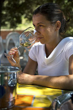 Na een kilometer of vijf door een verrukkelijke vallei geslingerd te hebben, komen we aan bij de cantina ‘Vini Mura’, een exponent van de renaissance van de Sardijnse wijncultuur, zo zal later blijken. Wij worden hartelijk ontvangen door Marianna en Roberto. Mariana’s vader is in de jaren ‘60 als hobby begonnen met het maken van wijn op deze plek. (Foto´s: Karin van Mierlo)