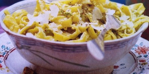 Vandaag koken we uit Jamie Magazine, met het succesrecept van chef-kok Raffaele Natale (Cucina Italiana): verse tagliatelle met pistachesaus op Siciliaanse wijze.